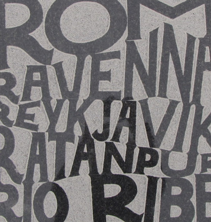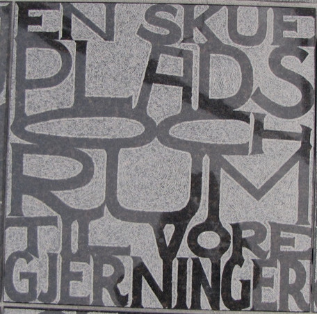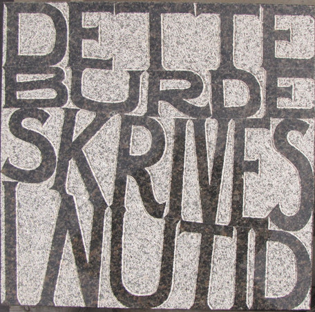 Midt i Ribe Katedralskoles skolegård, kan man se Laila Westergaards kunstværk, der består af 112 granitfliser med citater. Nedenfor kan man se de enkelte fliser, samt hvor citaterne er fra.