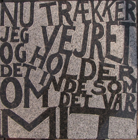 Men det vil jeg ikke jeg vil ikke gå en tur, ikke gå en tur jeg vil sidde og kigge det er det jeg kan det er det jeg gider det er det jeg vil (Jørgen Leth) | |